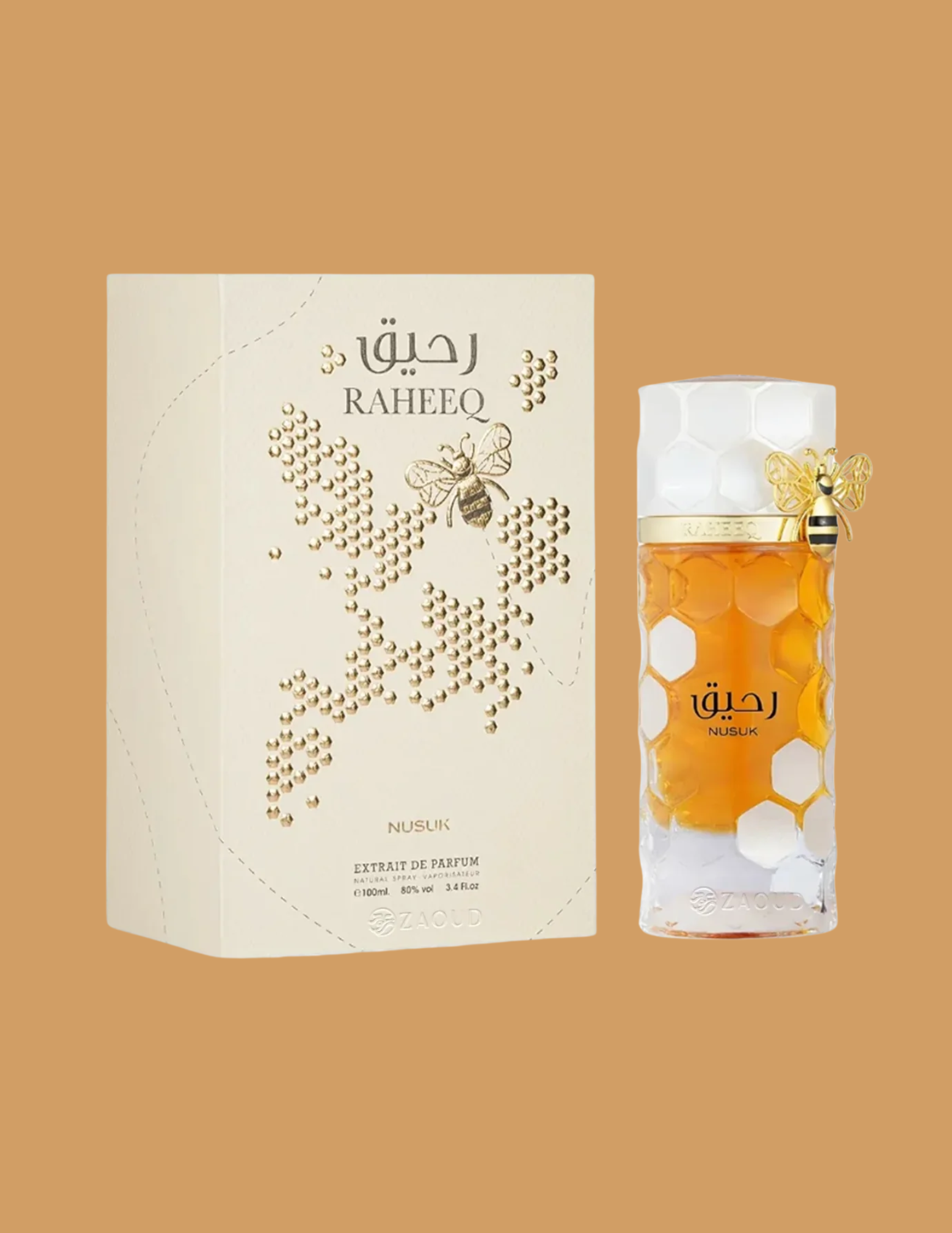 Raheeq by Nusuk is a warm, gourmand-leaning oriental vanilla that blends fruity, creamy, and floral facets into a cozy, sweet composition. Three key notes in this scent are: